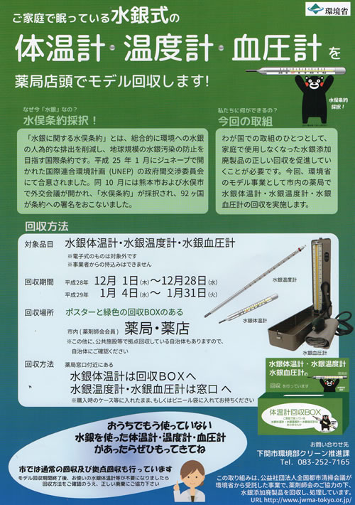 ご家庭で眠ってる水銀式の体温計・温度計・血圧計を回収します。