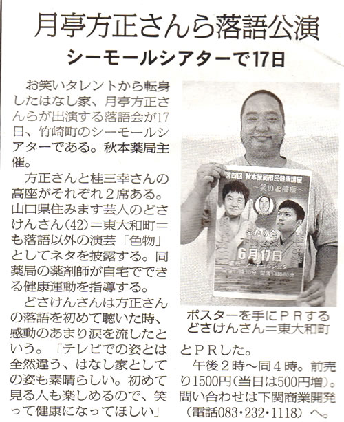 第四回秋本薬局市民健康講座のPRが山口新聞に掲載されました。