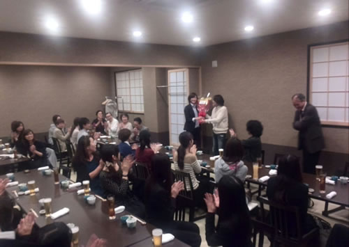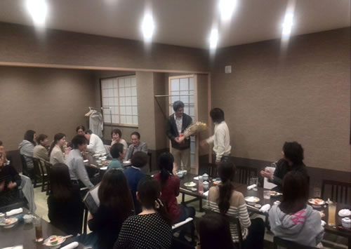 弊社代表秋本壽一郎に社員会より花束を贈呈いたしました。