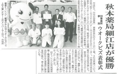 昨日、6月27日(木)に「職場のみんなでウオークビズ」で優勝した細江店の表彰式が